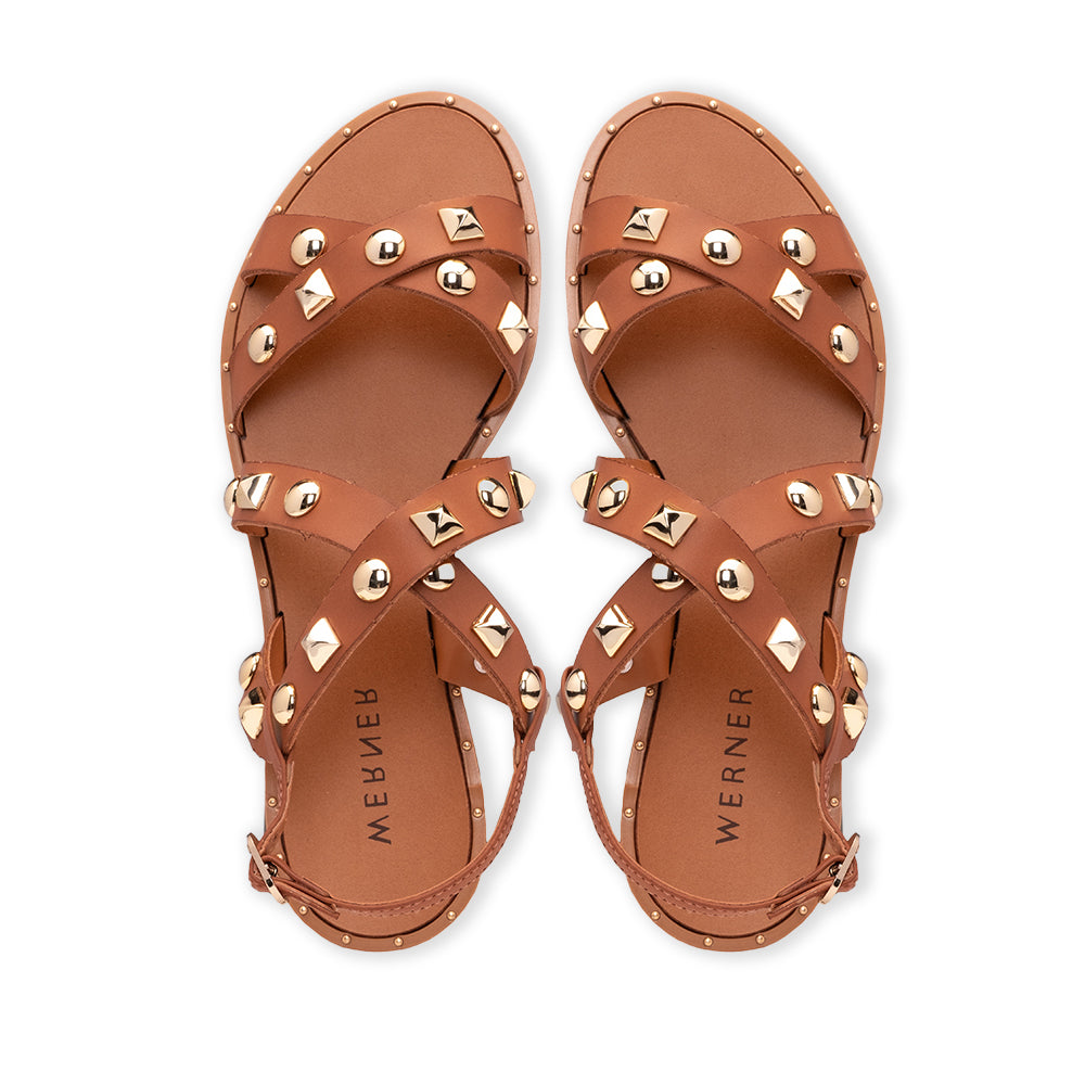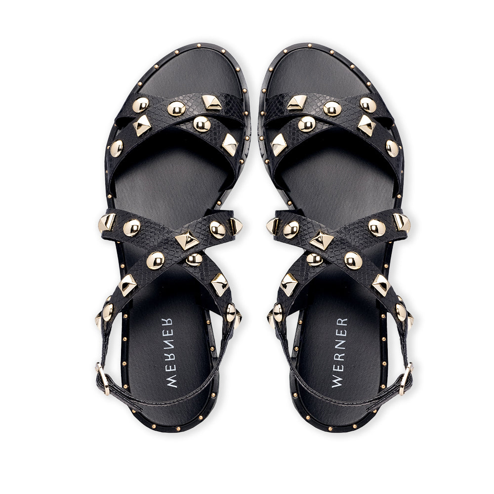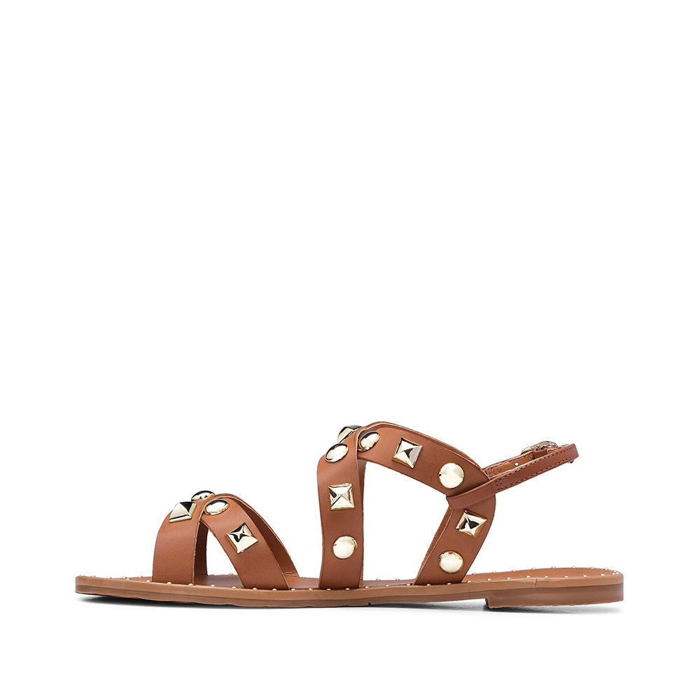 OLIMPIA FLAT SANDAL is a summer icon! It features studs on the straps. A perfect option for everyday wear, at the beach or for an office look!