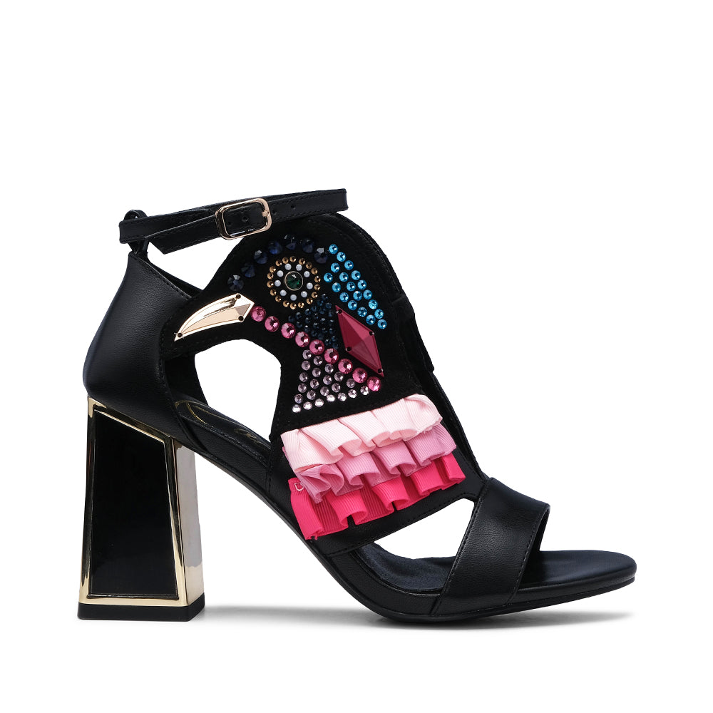 PAMPLONA, a deslumbrante sandália de salto alto da ROCK AWAY. Com detalhes cravejados, este salto oferece uma confortável elevação de 9 cm ao seu look.