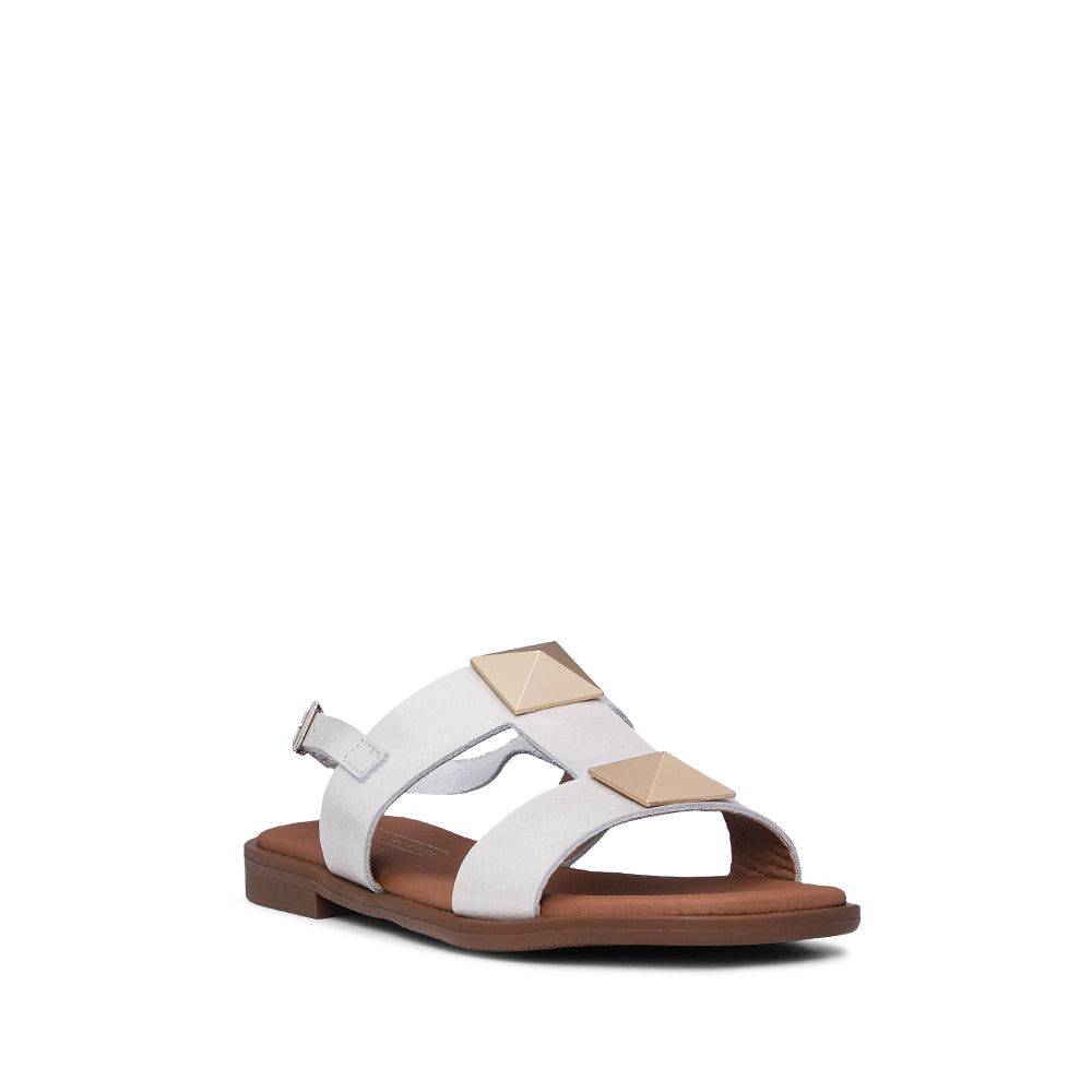 LIRIA FLAT SANDALS, comfortable insole, gold application and adjustable buckle strap at the ankle.