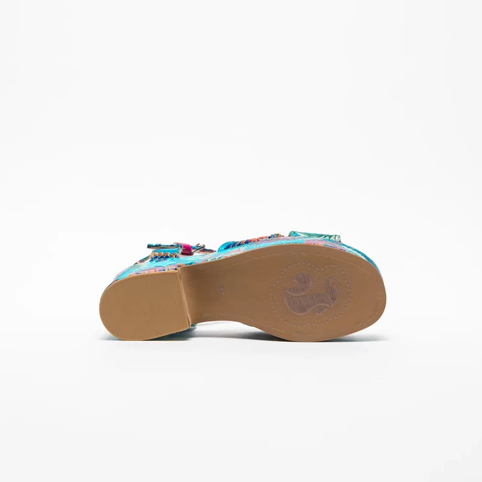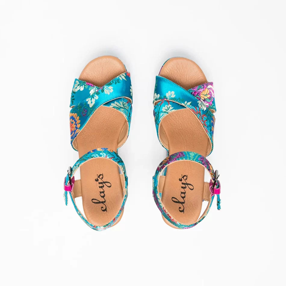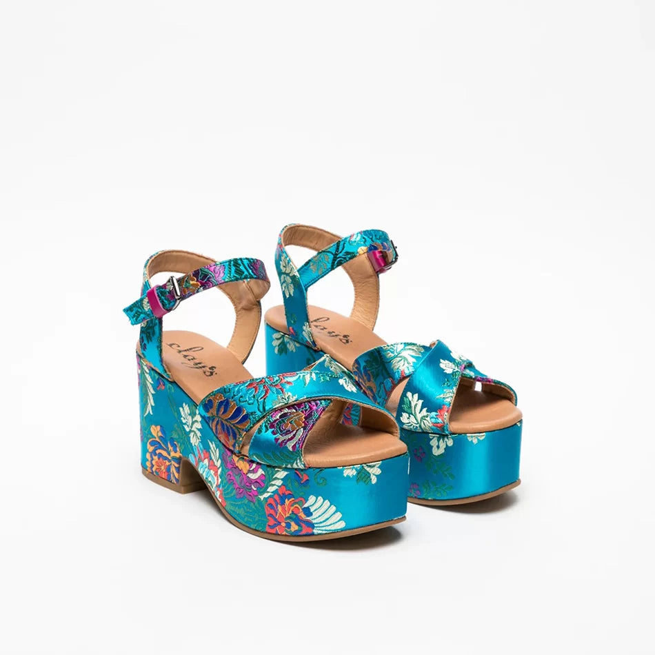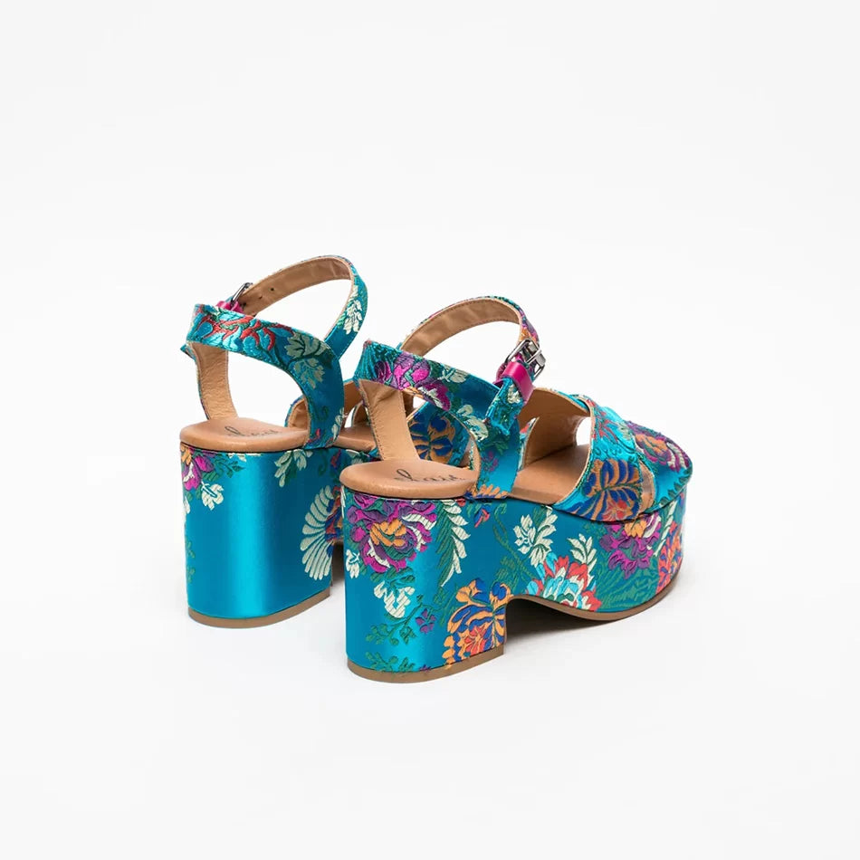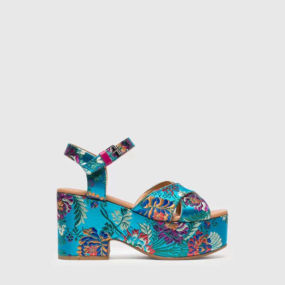 FLOWER ORIENTE platform sandals. Inspired by Oriental designs, these colorful sandals elevate your look while providing the perfect height and support.